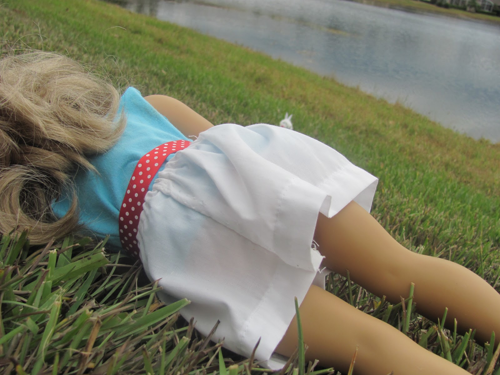 I added belt loops to the waistline of the dress and made a bow belt with a